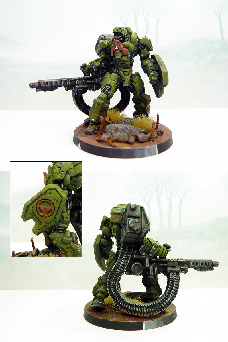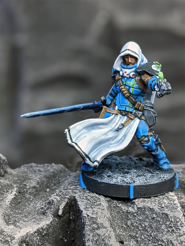 I finally tackled one of my favorite models of Haqqislam and the whole Infinity range: he Odalisque with spitfire. Such a simple but elegant model with so much character! As such I tried especially hard to get near the stuido paint job, but of course the close up fotos still reveal the difference in quality. I'm operating at the edge of my vision (even with a magnifier) and eye-hand-coordunation here. Fortunately I'm able to ignore these deficiencies and just enjoy my end result!